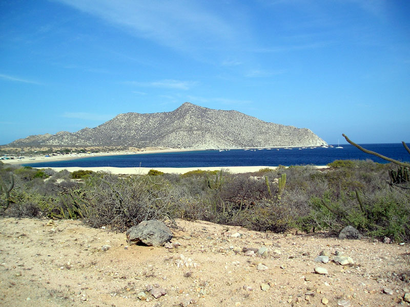 | We had some gusts up to 20 knots on our way in that night. The weather report the next morning suggested north winds would die down in 48 hours. Every day for the next 7 days we heard that the wind would die down in 48 hours. One weather report didn't even acknowledge that there was any significant wind in the sea of Cortez for the first 4 days we were anchored (actually he disagreed with official NOAA warnings which were accurate). In the meantime, the anchorage grew from 20 to almost 40 boats as we all waited for 25 knot north winds to decrease. Most of these were Ha-Ha boats, so we finally did decide to have a potluck on the beach one afternoon. As days passed, on occasion, someone would decide to head out for La Paz, but within an hour or two would let us know they were giving up and coming back in. And so we waited..... There was a small fishing village on the beach, and most afternoons we shopped for fresh fish in the trucks. The vegetable truck was rumored to come on Friday afternoon. He eventually showed up Monday. The little hotel on the beach was closed for remodeling and new ownership, but the little restaurant at the end of a small dirt road (off the bigger dirt road) was quite the find. Pablo picked Duke, David and Maureen up in his old beater truck as we were walking towards him (he'd been on his way to the well to get water). He provided us with margaritas and a fine chicken lunch. Pablo generally fixed his meals from what was available in his larder, maybe only beer one day, beef not chicken another ... maybe shrimp or fish ... Sunday morning Melinda, David and Adrienne made the 5 mile trek to the store in the next village, a pleasant stroll and quite a success. They visited the proprietors hermosa next door and purchased tortillas fresh off the grill. After securing provisions, the store owner took pity on them and drove them back to Los Frailes. On a sadder note, one boat that joined us in our anchorage had suffered the loss of their mast & rigging after towing another sailboat upwind in harsh conditions for several hours. After they had cut loose the towed boat and made a last tack to head into the bay, the mast snapped and they had several anxious moments before they were able to cut everything loose and let it all sink to the bottom. We had arrived early Wed. am, and had figured to head north by Friday. Then we thought the weather would be better by Sunday (several boats departed Sunday for Mazatlan). Sunday night we packed up the dinghy and prepared to leave Monday morning early. At midnight we woke up listening to howling wind, and went back to sleep. Another plan was made to leave early Tuesday morning. 4 am came by, the wind was still howling....but then Daydreams called out as they motored by - we talked on the radio and they had made the decision that if they didn't leave they might be here forever. The wind was in the midteens - but off we went within the hour. Again we sailed out across the Sea of Cortez, eventually tacked back - flying along at 8 knots. At 1 pm we were contemplating tacking again, and when I checked on the chart we were only 14 miles north of Frailes after 6 hours of great sailing. So again, in order to get where we wanted to go, we turned on the engine. We crashed northward through big waves and swells. 11pm and we were close to Bahia de los Muertos. Discussed stopping to rest, but decided that if we just kept going we would be in La Paz the next morning. (Bad idea) Justin and M had the watch now as we motored on. We were 6 or 7 miles past Muertos when the engine rpms began fluctuating drastically. We reduced power immediately & began checking gages - in short time we diagnosed a clogged fuel filter. All the crashing had stirred up junk in the fuel tanks. With reduced power we were still making headway, and it was too rough to attempt any repairs at the immediate moment. Fortunately the wind direction soon changed and we were then able to sail nicely until 3 am. David had just gone off watch and was hoping for some sleep (we had just entered Cerralvo channel), when the wind disappeared completely. We couldn't turn the engine back on until the fuel filters were cleaned out - luckily the seas were now glassy. David was roused from his bunk and started wallowing in diesel. At 6 am we were ready for an engine (and sleep too, but that would have to wait). We motored north very slowly just in case the filters went south again. In San Lorenzo channel we turned west then south (after our long northward trek) and we were able to sail the last few hours on a building breeze into La Paz. We pulled into La Paz at 2 pm. The channel into La Paz warrants the warnings about not entering at night if you are unfamiliar with the area. Take our word, or read about ee-Ya who ran aground a week later. -M |