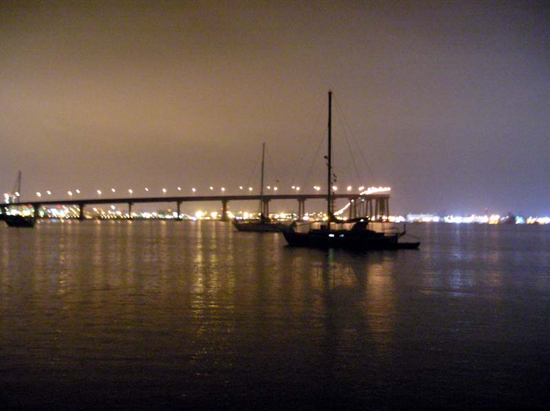 | The view towards San Diego, from our anchorage in Glorietta Bay on Coronado Island. |