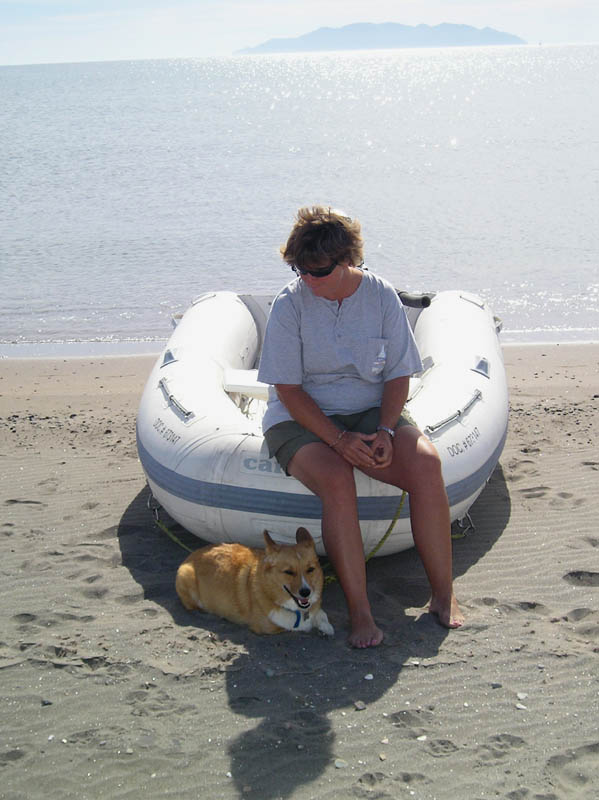 | We checked on our computer and found the moderate high had just happened, a low was coming at 2 pm, and the next high (mas grande) was at 8pm. We headed over to their boat and tried heeling her over with the boom off to the side loaded with as many bodies as possible, but no luck. Manuel eventually showed up and tried pulling her off the rocks, but that didn't work either. About 4PM, on a rising tide, Manuel and another Baja pescador were able to help El Shidah (a Jenneau 494) heel over by pulling on the main halyard with their Pangas, El Shidah's diesel running forward, and OFF SHE CAME ! Us concerned cruisers, who had tried to help earlier and recommended waiting for the High Tide, were impressed by the technique. Editors Note: Moments ago, I briefly quit working on this web page, Maureen had called from the cockpit. It seems El Shidah is not the only vessel struggling today. It appears that this afternoon, as the seas have built slightly in a nice 15 knot SW breeze, Tenacious is slipping her anchor. This is getting old, it may be time to discipline the crew. We addressed the situation, we will have to monitor issues more closely, I presume we are not headed for a reef or the beach at this point. |