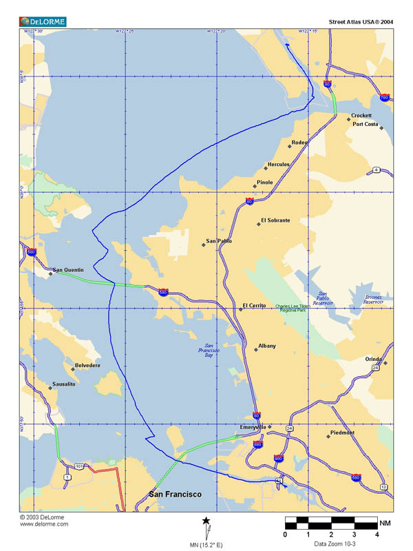 Yerba Buena island enroute to the Oakland Inner Harbor channel. As helmsman Maureen set her